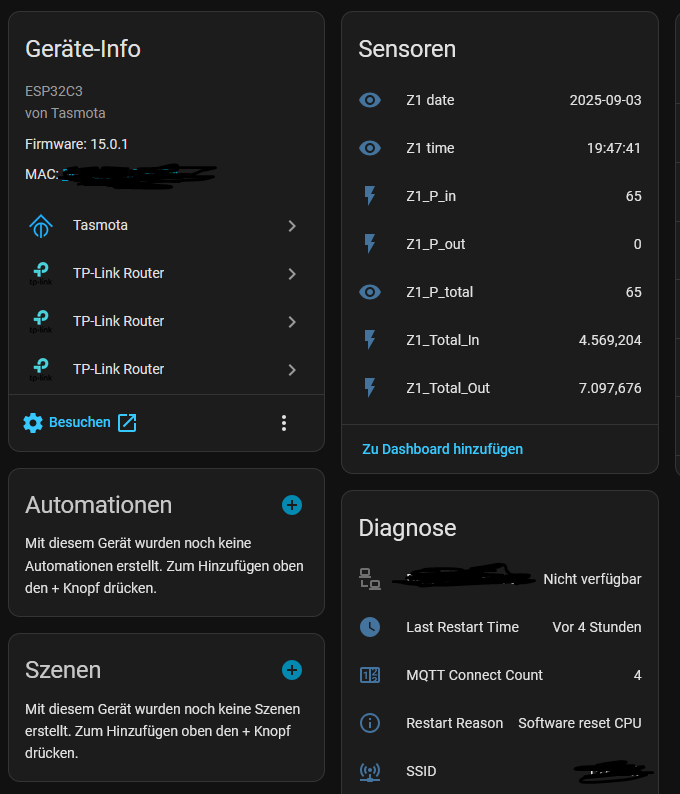 Jetzt auf das Webinterface von Tasmota mit der IP die der Lesekopf zugewiesen bekommen hat, verbinden.