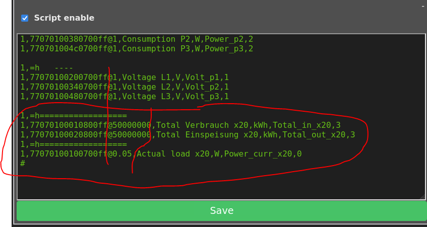 Ich habe einen Elster AS1500 Zähler und habe an diesem einen Stromleser Tasmota montiert. Da es kein fertiges Skript für den 1500 gab, habe ich das Skript für den AS1440 genommen und bekomme auch die Gesamtwerte für Bezug und Einspeisung in der App angezeigt.