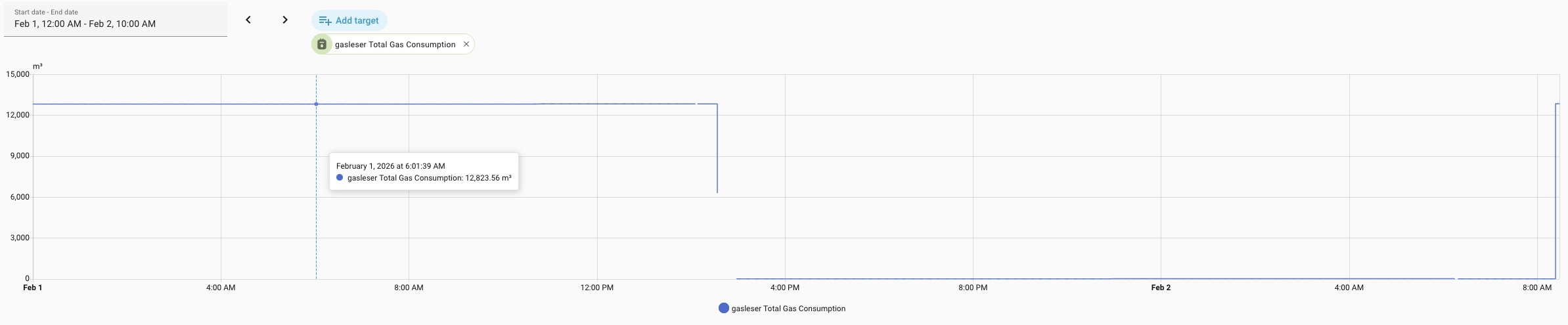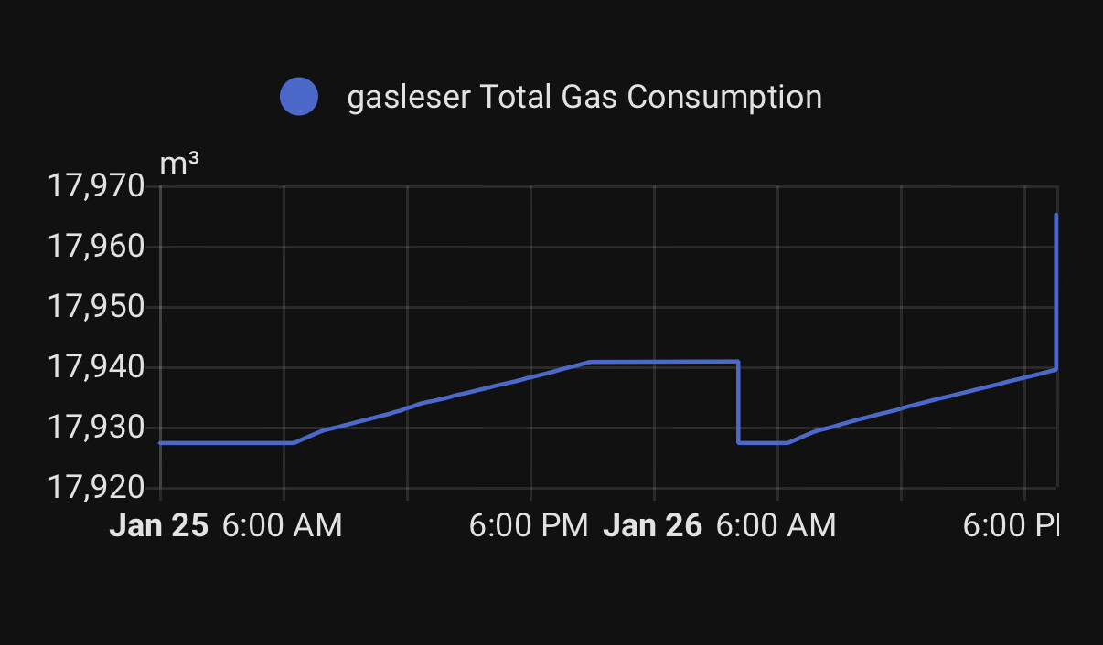Der Gas Leser scheint zwischendurch immer zurück zu springen. Immer wenn ich drauf geschaut habe, stimmten die Werte nicht mit der Anzeige am physischen Gasmesser überein.