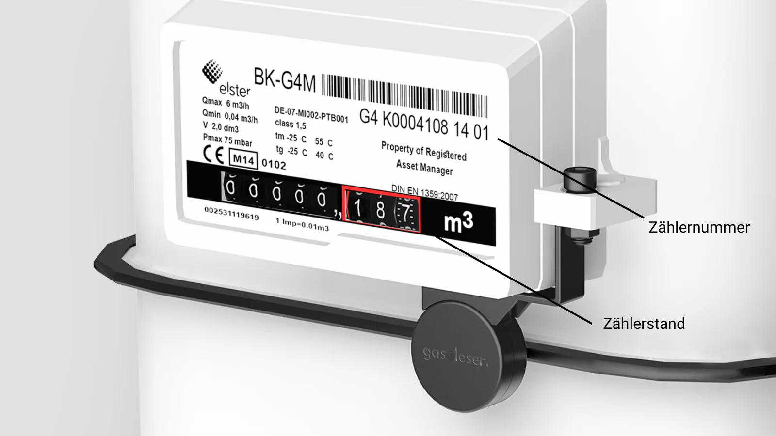 Tipp: Die Gaszählernummer ist auf dem Gerät vermerkt – sie wird z. B. bei der jährlichen Zählerstandsmeldung benötigt.