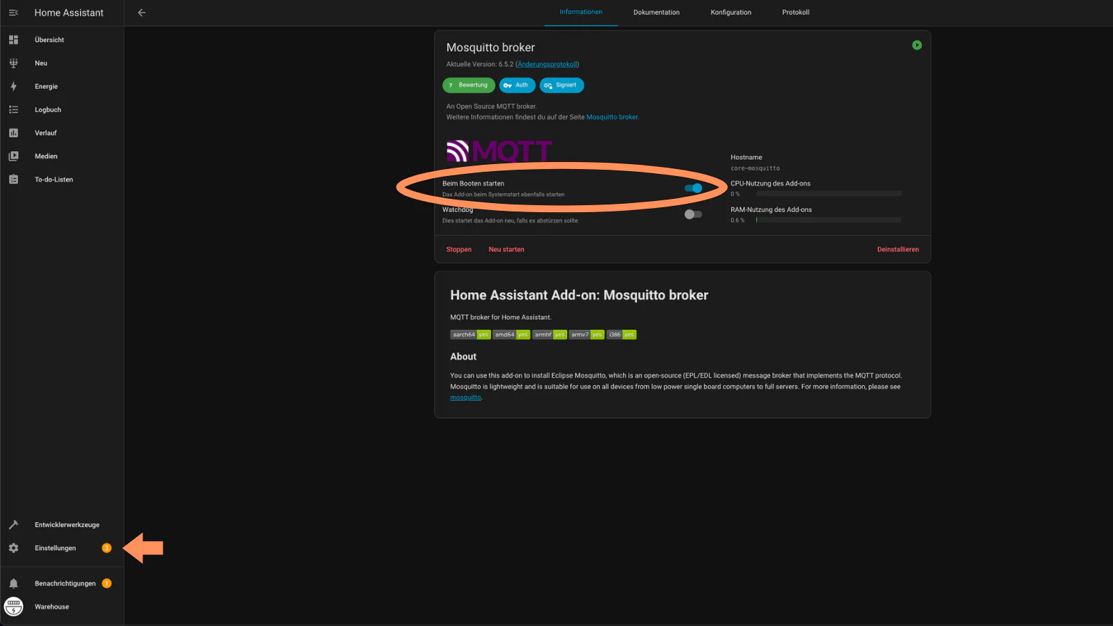 Damit dein Gerät mit Home Assistant kommunizieren kann, musst du den Mosquitto MQTT Broker installieren.