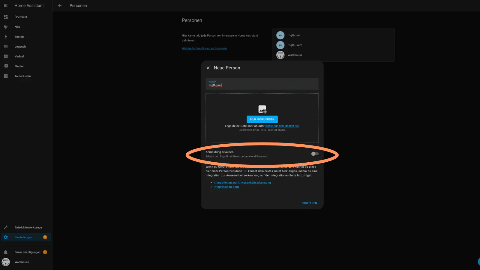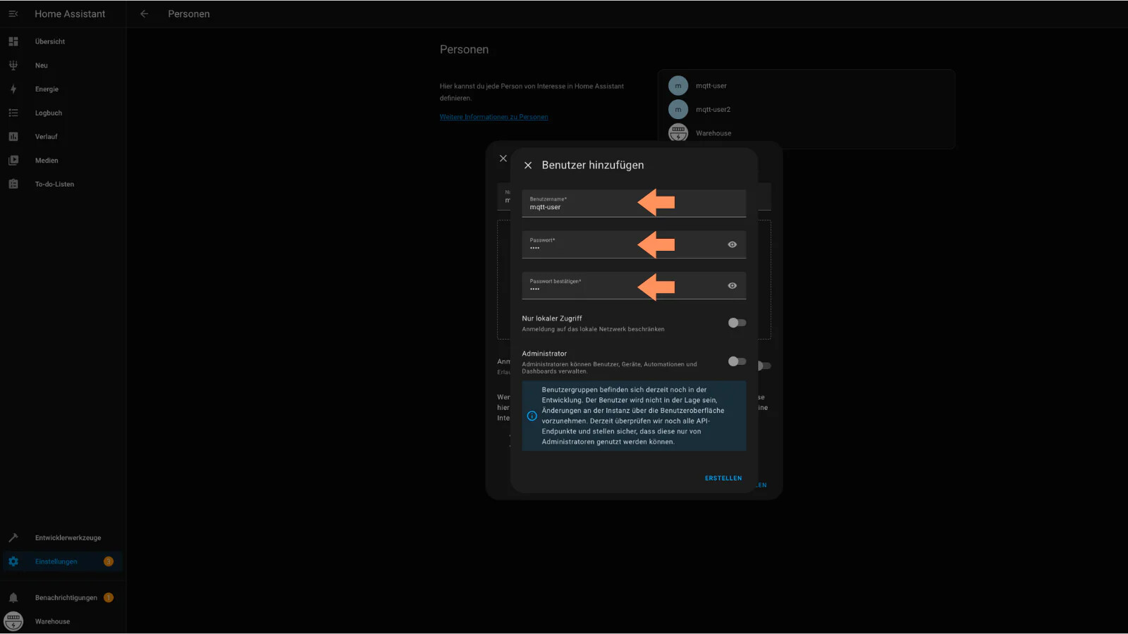 Achte darauf, ein starkes Passwort für den MQTT-Benutzer zu wählen, da dieser Zugang direkt für die Kommunikation deiner Geräte genutzt wird.