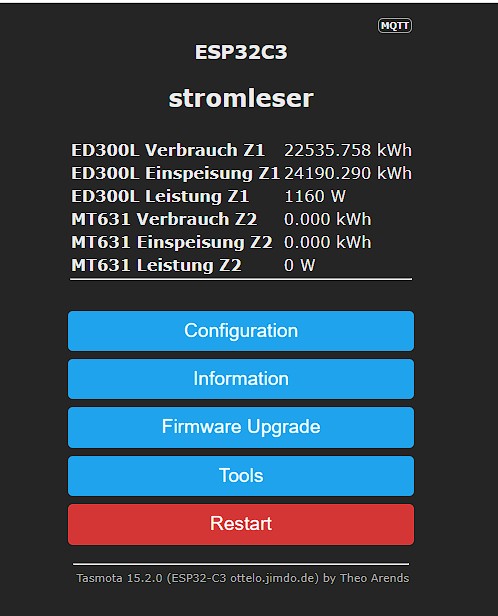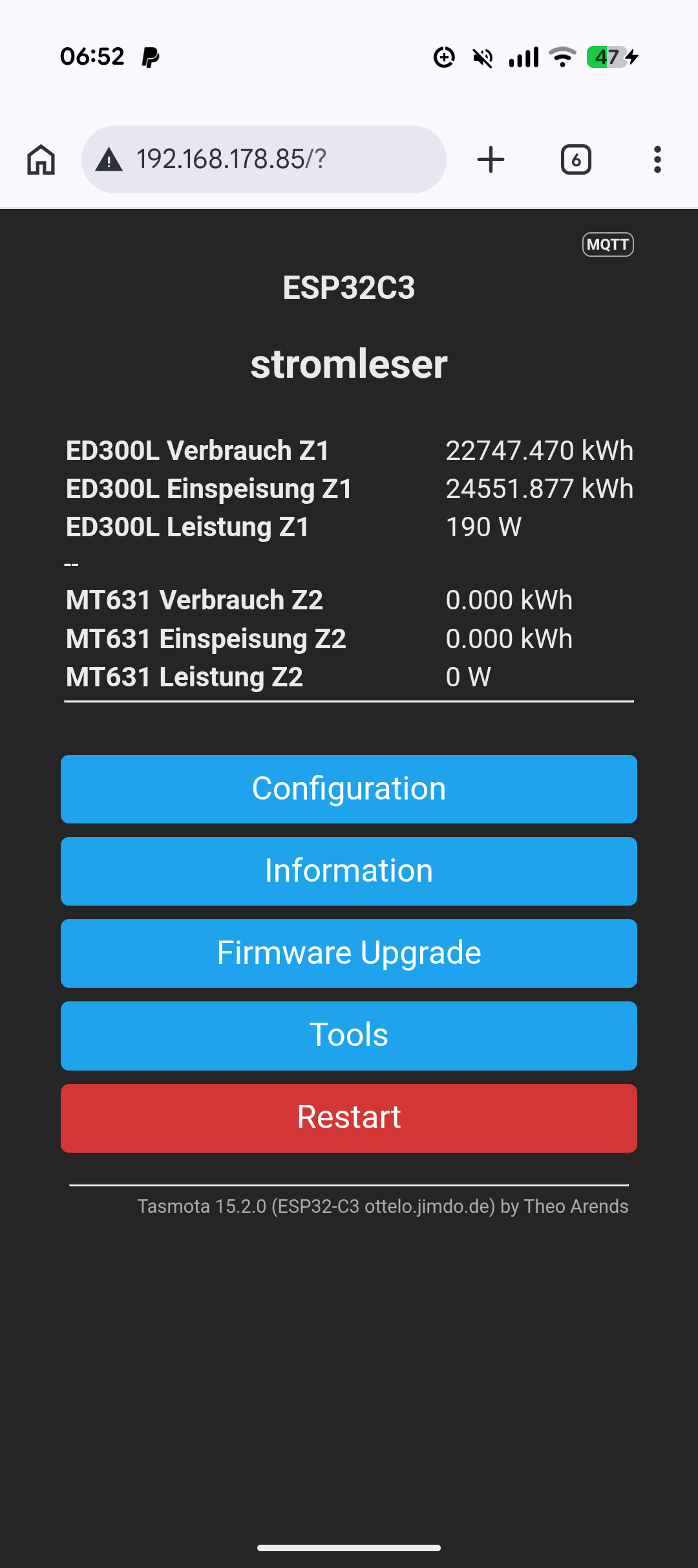 Controller: Stromleser ESP32-C3 (4-Port Version) mit Tasmota 15.2.0.