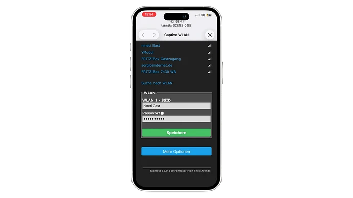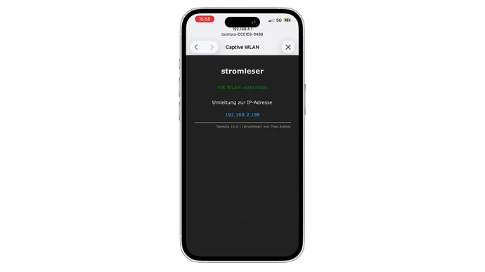 - Tasmota-Seite öffnet sich nicht: Mit Tasmota-WLAN verbunden? Sonst http://192.168.4.1 manuell aufrufen