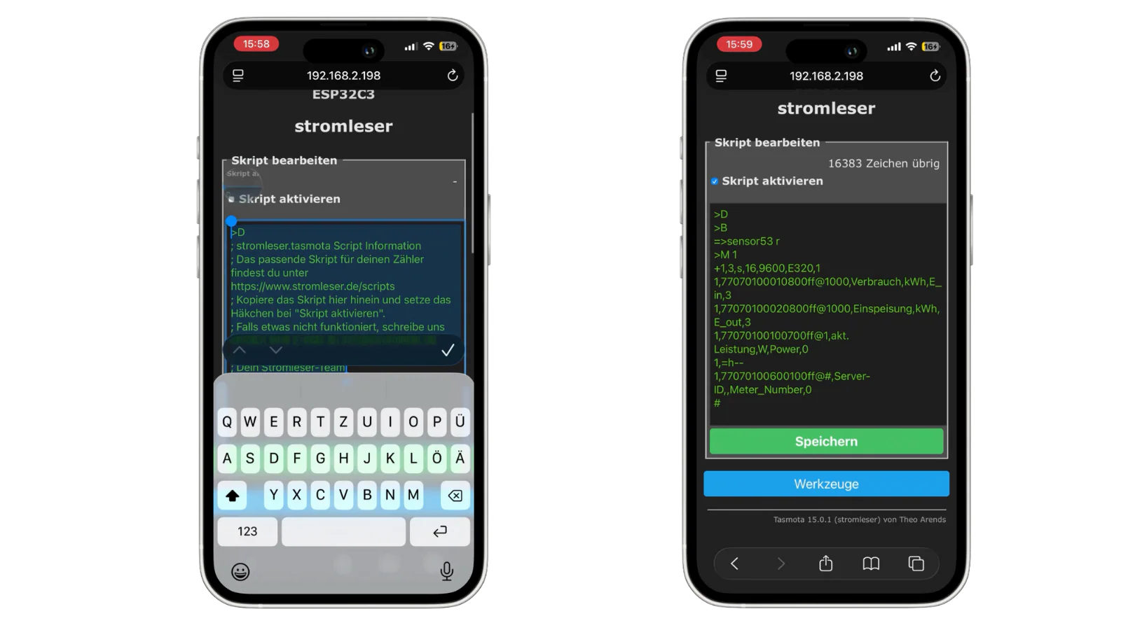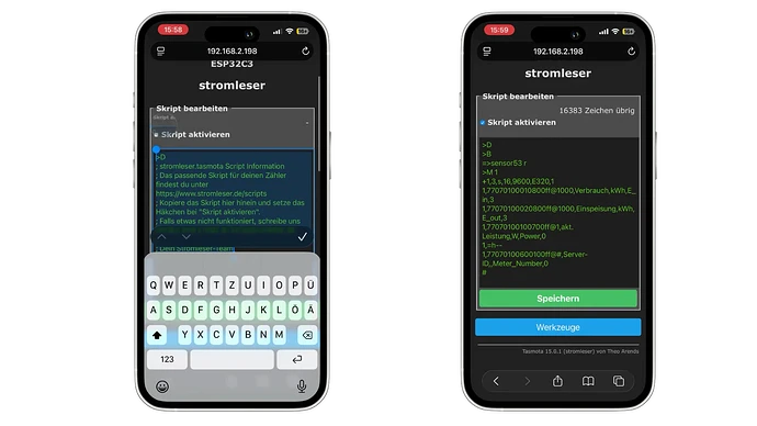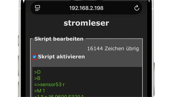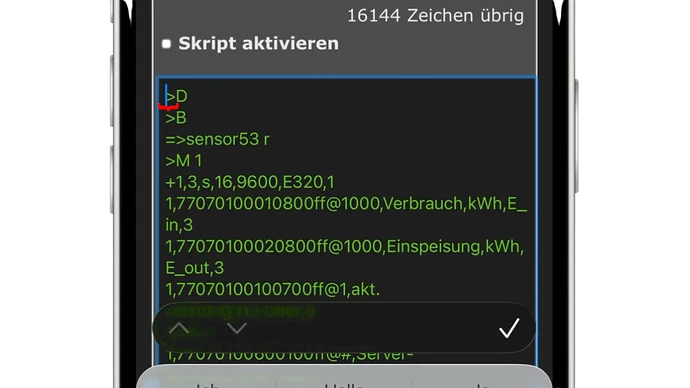 - Keine Daten nach Skript: Richtiges Zählermodell gewählt? Skript aktiviert? Keine Leerzeichen eingefügt?