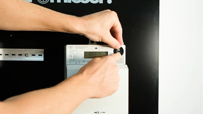 2. stromleser befestigen: Der stromleser wird magnetisch befestigt.