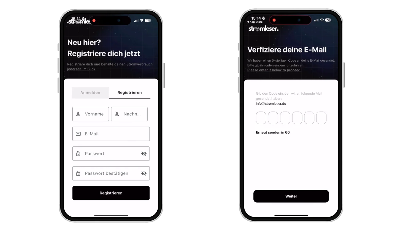 Aus dem App Store oder Google Play Store die stromleser-App herunterladen