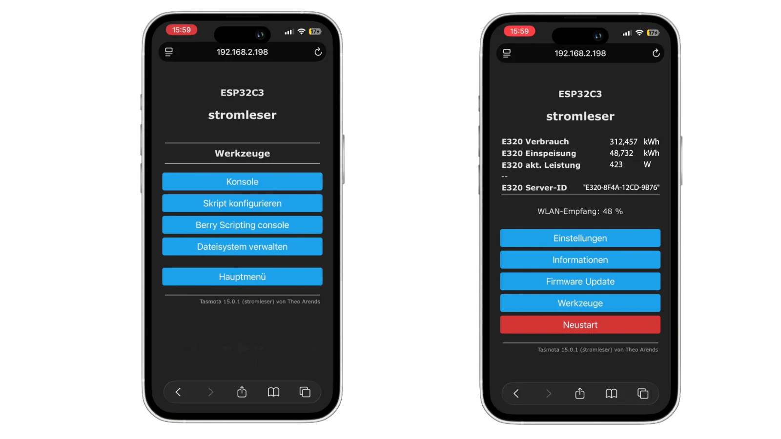 Wichtig: Führe kein Firmware-Update in Tasmota durch – das kann die Firmware beschädigen. Für ein Neu-Flashen gibt es eine separate Anleitung.