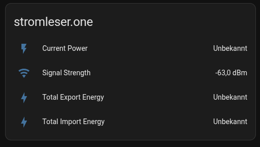 ich habe ein kleines Problem mit dem Stromleser.one nachdem ich den Stromleser an den Zähler angeschlossen habe bekomme ich auch Daten von diesem in der Handy App. Dann habe ich Ihn per MQTT an den Homeassistent angebunden aber leider bekomme ich nur