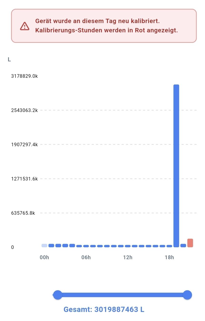 Bei mir auch der gleiche Effekt, Neukalibrierung hat nichts geändert. Habe jetzt 700000 m3 Verbrauch an einem Tag.