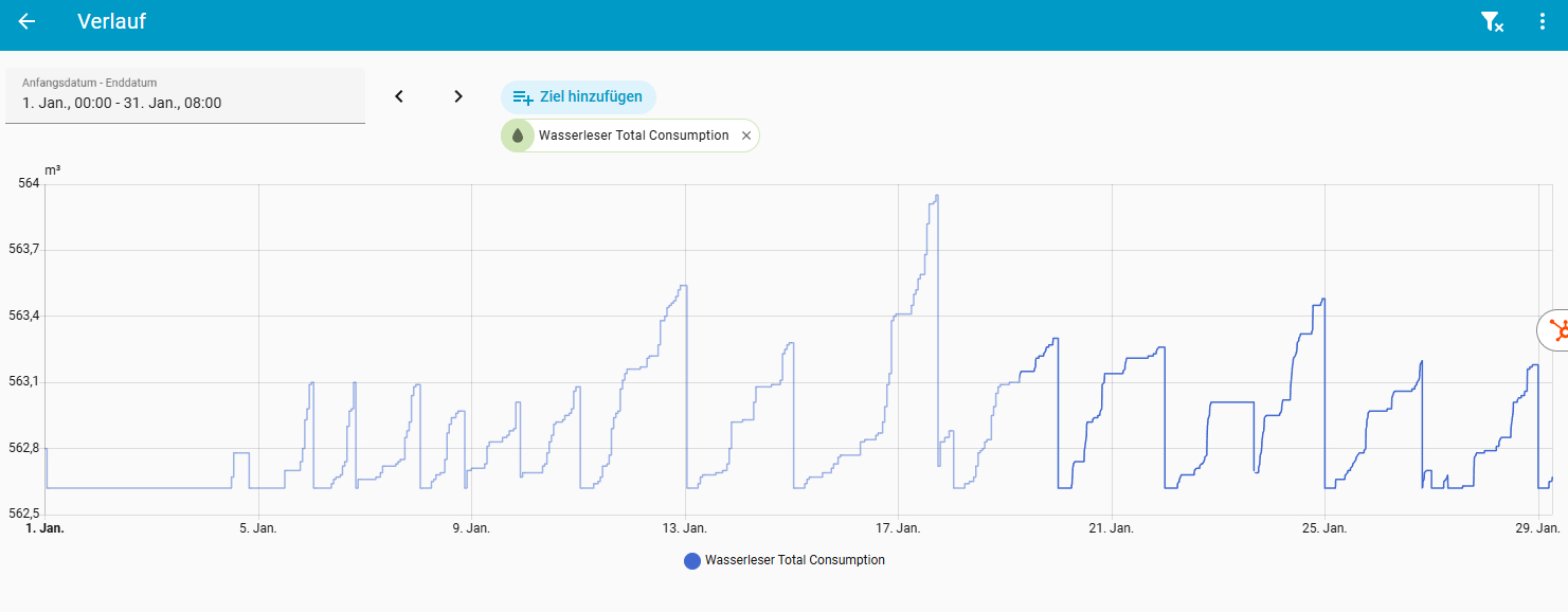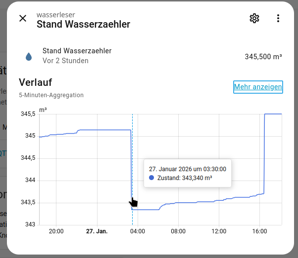 Ich habe gestern den wasserleser erhalten und alles neu erstmalig installiert. Gestern hat alles funktioniert, heute morgen habe ich auch -0,1m3 weniger auf der App als auch im homeassistant.