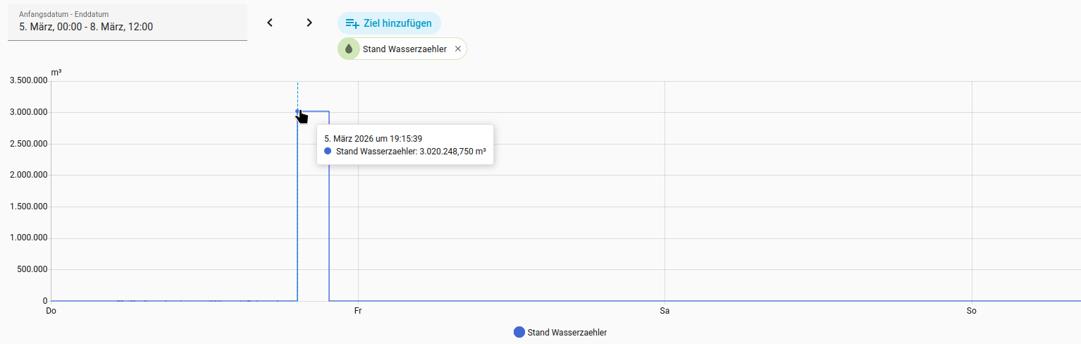 Anfang Februar wurde der Zähler installiert und lief bis heute einwandfrei. Heute morgen jedoch ein Sprung auf 2.9Mill. m3.