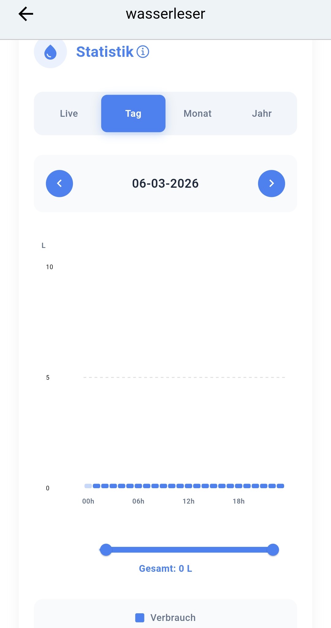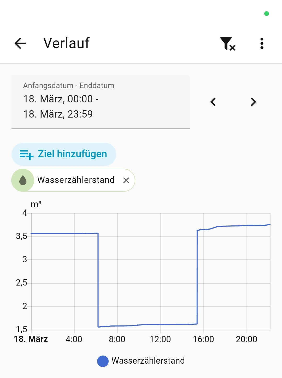 Dennoch wird in der Tagesansicht immer ein Verbrauch von 0l ausgewiesen. An HA wird demzufolge auch kein neuer Zählerstand übermittelt.