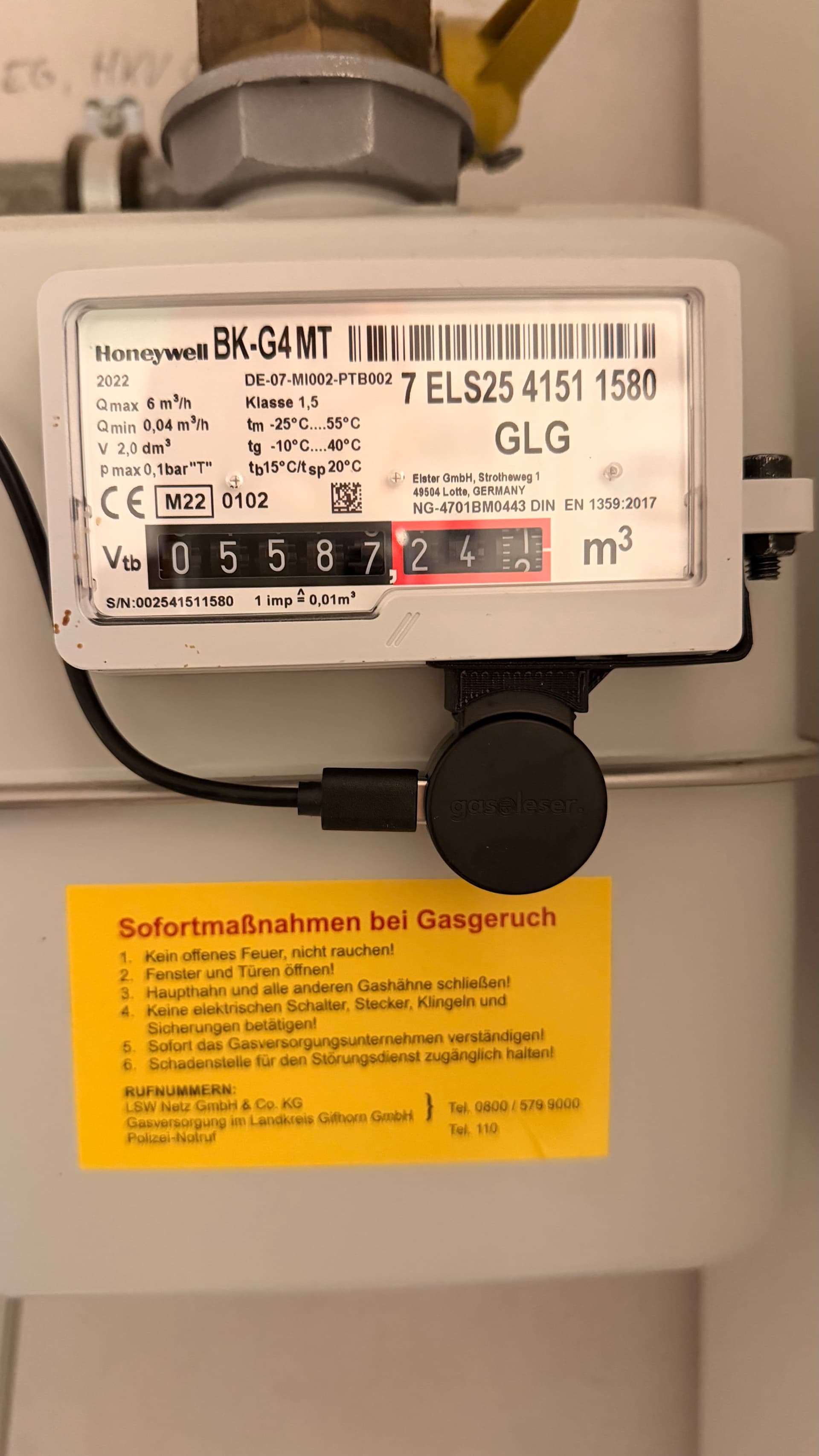 ich habe meinen Gasleser jetzt zum ersten Mal in Betrieb genommen.